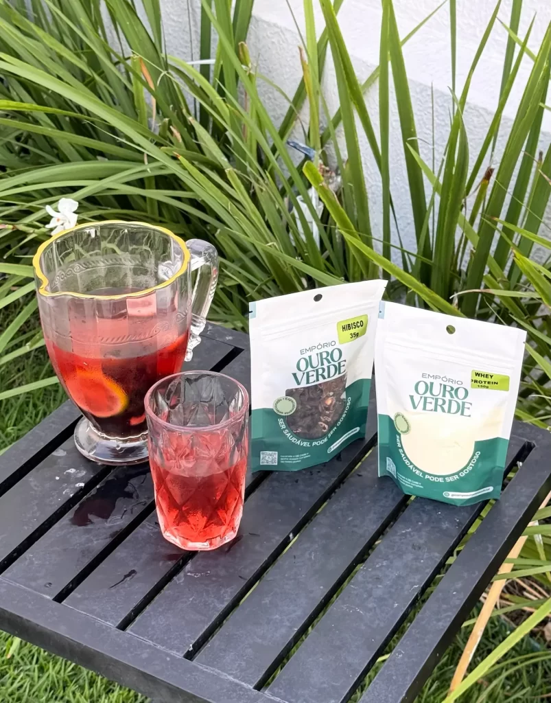 Chá Detox de Hibisco é uma bebida refrescante e aromática, preparada com infusão intensa de hibisco e combinada com cítricos e especiarias, ideal para hidratar, auxiliar na redução da retenção de líquidos e trazer leveza para o dia a dia.